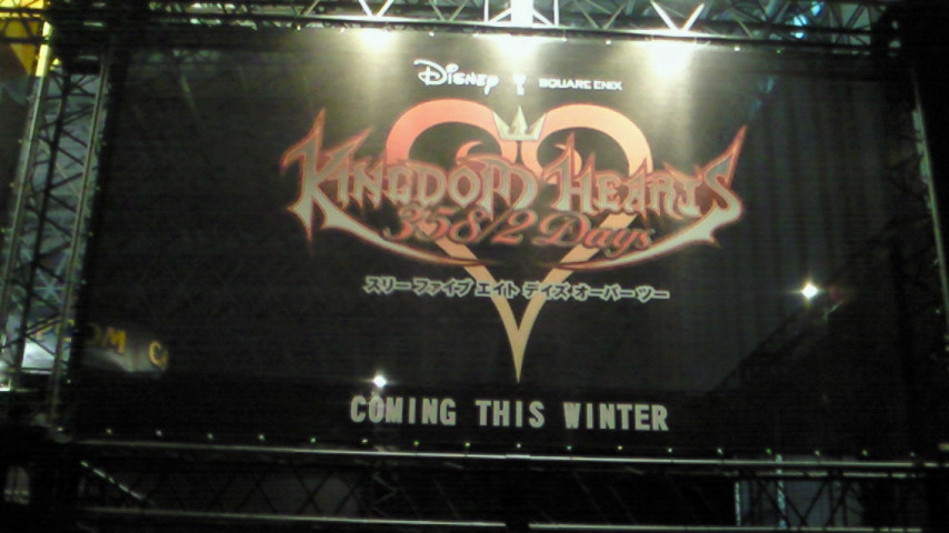 「ダメだ!寝たら死ぬぞ!」という言葉が頭に思い浮かんだぐらいです。 10月だと思って油断してました^^; カイロを持っていってたんですが、効果は今ひとつです^^; 帰りの新幹線では10時間ぶり(←!?)に座れて身体が少し休息出来たせいか、駅で買ったネウロ最新刊を読んでいたら、いきなり意識がなくなって「意識がなくなるのってこういうことを言うんだ」と思いました; それでも人は多いです; クローズド・メガシアターの整理券がすぐになくなりました… 撮ってきましたw DFF全員(一部を除く)集合ですw コレ↑欲しいですw(けど高いです^^;) ポーションとDFF同梱版新型PSP展示のすぐ近くにソラのプレイアーツがありましたw そのすぐ近くにはセバスチャンもいました。 CDを2枚買いましたw 一枚買い終わってからもう一枚買うべきかどうか悩んで結局買いました^^; なのでサンプラーCDとエコバックを2つずつ貰いました これがエコバックですw さて、ここからそれぞれの感想に行ってみたいと思いますw 【試遊:KH358/2Days】 KH358/2Daysの試遊は3回やってきましたw 一回目はアクセルとトワイライトタウンで任務、 二回目はシグバールとハロウィンタウンで任務、 三回目はザルディンとビーストキャッスルで任務をしましたww DSであそこまでワールドを再現できるのはスゴイと思いますw 一回目は操作に慣れてなくて、敵に攻撃していたのにいつの間にかアクセルを攻撃してしまったり^^;(アクセルごめん )【試遊:KHBbs】 KHBbsは本当は2回試遊出来たんですが、時間の都合で一回だけにしました^^; テラ編とヴェントゥスがあって、自分はヴェンを選びましたw ヴェントゥス編が早く終わってスタッフさんが「時間があるからもう少しやっていい」と言ってくれたので、テラ編もしましたw ヴェントゥス編はシンデレラのワールド、テラ編は白雪姫のワールドでしたw ヴェントゥス編をやってみると、ヴェンはソラみたいな仕草と性格だと思います。 ソラがよく頭のところで手を組むのをヴェンもやっていましたし、 性格も話を見るとソラみたいです ヴェントゥス編はテキストだけで話のところは喋ってなかったのですが、テラ編にはムービーがありましたw“こいつらがマスターの言ってたアンバースか”と言ってからアンバースとのバトルになって、バトルをしていたら時間が終了しました^^; (やっぱりテラが喋っているのを聞くと、置鮎龍太郎さんだと思います PSPでも、PS2と同じぐらいの画質でビックリしましたw 試遊したらテラがパワータイプ、ヴェンがスピードタイプだとすぐ分かりましたw 自分的にはヴェンが一番使いやすいですww 【試遊:DFF】 これも本当は2回試遊が出来たんですが、時間の都合で一回だけにしました^^; ジタンとスコールで迷ったんですが、スコールに決めましたw 操作キャラクターを選んだら自動的にバトルになりますw 一戦目はフリオニールと戦ったんですが…5秒で倒しました。 …フリオニール…なんか…ゴメン… こんなに早く倒せるの!?と思いながら回りを見回してみたら戦っているし… 二戦目はジタン、三戦目はオニオンナイト、四戦目はアルティミシアと戦いましたw 他の人よりも早く終わってしまってスタッフさんに“もう終わったんですが”と言って試遊終了したんですが、スタッフさんも何で早く終わったんだと思っているような顔をしてました^^; 【試遊:KHモバイル】 これは3つのワールドから選べたんですが、自分はトラヴァーズタウンを選んで、 レオン、エアリス、ユフィと一緒に大富豪をしたんですが、 一回目はレオンのボロ負けでした^^; 二回目の最初にそれぞれの札を2枚ずつ交換したんですが、 レオンに「理解できん」と言われたり(弱い札を貰ったんだと思います) 二回目の途中で時間が来たので終了しました。 【試遊:KHcd】 Docomoブースで試遊してきましたw ストーリーはトラヴァーズタウンで子アヒル3兄弟を探すというストーリーでした。 ケータイでもKHらしさがしっかりと出ているのでスゴイです! 試遊終わりにKHcdのうちわとファイルとDocomoのスーパーボールを貰いましたw ここからはクローズド・メガシアターの感想デスw 上映前にクラウドが“お越しいただきありがとうございます”などイロイロ言ってましたw 【クローズドメガシアター:KH358/2Days】 今回泣けそうになったところが2つありました。 1つ目はBGM(The Other Promise オーケストラ)、2つ目はシオンの存在です。 ・シオンの姿が公開しました! ・シオンの姿はカイリにソックリで、黒いショートヘア以外はすべてがうり2つでした! ・シオンも特別な生まれ方をしたノーバディらしく、自分が何者なのかよく分からない。 (ここから内容説明) ・最初にロクサスとアクセルがトワイライトタウンの時計台に座っていて、ロクサスが機関に入ってからの日数のことを話す ・シオンとナミネが会う。そこでシオンの素顔が公開 ・デスティニーアイランドの海でロクサスが砂浜にいて、海でサラサ貝を拾う ・同じくデスティニーアイランドでシオン
