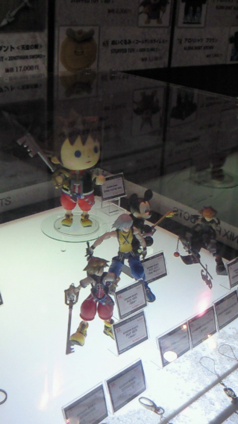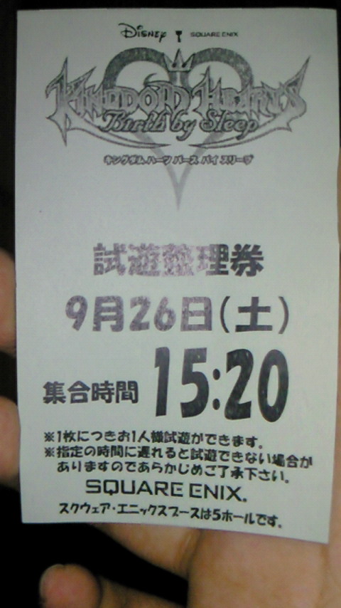 今回はジャンルによって、更新を分けようと思います。 今日は、キングダムハーツバースバイスリープの感想・まとめレポートです。 【KHBbS‐試遊の感想‐】 今回の東京ゲームショウで、アクアが初めて試遊が出来るということで、 今回はアクアでプレイしました。 ちなみにアクアが行った世界は、白雪姫の世界です。 7人の小人に話し掛けるアクアは、敬語を使い、とても礼儀正しいです^^ 戦う時は、マジックタイプなだけあって、 魔法関連の技が多かったです。 あと、戦っている時のアクアの声が少し可愛かったですw そして戦っている姿は美しくてかっこいいと思います! 鏡を見たら、鏡に仮面が現れて、アクアが鏡の中に吸い込まれて、バトルになりました。 倒したあとは時間があったので、ヴェンをプレイしました^^ 今まで何回かヴェンをプレイしましたが、 いつもは、最初テキストから始まって、ボイスはありませんでしが、 今回の試遊では、ボイス付きムービーでしたw ヴェンとネズミのジャックで喋っていて、途中からシンデレラも登場しました。シンデレラも、ヴェンのことは知っているみたいで、 「ジャック ヴェンとは友達になれた?」 と、シンデレラは言ってました。 ヴェンでの試遊では、シンデレラのドレスの材料を探すのですが、 自分は、ヴェンのバトルスタイルを楽しんでました^^ 【KHBbS‐映像‐】 ここからは、箇条書きです。 ・アクアが自分の分と、テラとヴェンにサラサ貝のお守りを作って、3人のつながりと言ってました。 ・王様が、大きな本に乗って、荒れている海にいましたが、渦潮に巻き込まれてしまいました。 ・王様が落としたらしい星のかけらを、ネバーランドでヴェンが拾いました。 ・多分ストーリーモード内でなんですが、鎧を着た中の戦いがありました。声からしてヴェンが戦ってました。 ・ザルディンとヴィクセンとレクセウスが、ディランとエヴェンとエレウスだったころの映像がありました。 ・エヴェンは、まんまヴィクセンっぽくて、エレウスは、レクセウスの時と髪型が少し違うぐらいで(少し短髪?)、ディランは、ザルディンの髪型ではあるドレッドがありませんでした。 ・エヴェンは研究者らしくて、ディランとエレウスは、門番らしき人でした。(声もノーバディのままっぽかったです) ・テラ、アクア、ヴェン達3人のキーブレードマスターらしき人も登場して、テラとアクアがマスター承認試験を受けてました。そこに、マスターゼアノートも見学してました。 ・ヴェンとマスターゼアノートの弟子が対峙してました。 ・マスターゼアノートの弟子は、喋ってたのですが、声が40%石田彰さんに似ているような気がしました。キーブレードを持つ時のかまえ方がリクと同じでした。 ・ヴェンがマスターゼアノートの弟子に、 「テラがテラじゃなくなるってどういうことだ」と言ってました。 ・ボードゲームのような画面があって、サイコロを振ってました。 ・テラが、マスターゼアノートに“どうしたら強くなれるのか教えて下さい”と言っていました。 ・ラストに、KHⅡFM+のシークレットムービーと同じ場面に、マスターゼアノートと、テラ達3人が対峙して、マスターゼアノートの弟子が、シークレットムービーに似ているような登場の仕方をして、マスターゼアノートが3人に、キーブレードの墓場のことを説明してました。かつては主がいたキーブレードの墓場で、キーブレード戦争があったと言っていました。 以上で、KHBbSの感想・まとめレポートを終わります。 長い文章を見てくださってありがとうございました^^ 明日はファイナルファンタジーです。 【オマケ】 KHアバターマスコットのロクサスを買いました^^