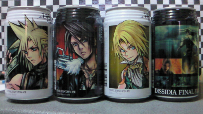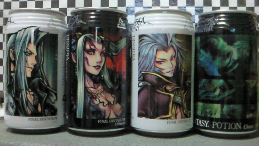 そのお饅頭が入ってた箱を見たら、マクロスFのお饅頭でしたw こんにちは☆ 今日またポーションを買いましたw 買ったのは、スコール&セフィロスのCG,verと、ティナ&皇帝のCG,verの2本ですw スコールとティナ目当てで、この2本を買いましたw スコール&セフィロスは、買う予定だったので、すぐ決まりましたが、 ティナ&皇帝は、ティナ目当てで欲しいと思ったんですが、 皇帝の顔がちょっと怖くて買うべきかどうか悩みました^^; でも、ティナのCG,verがどうしても欲しかったので、結局買いましたw (でも、やっぱり皇帝の顔が少し怖いです;) 学校の帰りに、DFFのポーションを買いましたーw 本当は明日発売だったので、あるかどうかはまだ分かりませんでした^^; 友達と店に行って、 「ちょっと用事があるから行ってくる」と言って1人で飲み物売場へ行くと… ちゃんとポーションが売ってましたw (しかも、まだ誰も買っていなくて、自分が一番乗りでしたw) どれを買うかまだ決めていなかったので、一人でポーションの前で悩んでました。 (周りの人から見たら何してるんだ?と思われてたかもです^^;) とりあえず4本決めてレジで会計をして、友達と合流しましたw 友達から何買ったの?と聞かれたのでポーションを見せたら、 「え!?売ってるの!?」となって皆をポーション売場へ案内。 友達もポーションを買いましたw やっぱりFFⅦは人気でしたw ポーションを飲みながらパソコンしてますが、 1本目を飲んでから、もう30分も経っていますが、まだ半分すら飲めてません; やっぱりジュースが飲めない(特に炭酸系)が飲めないのは辛いです… ↓上のポーション画像の反対側の絵柄です。 こんにちはwテストから解放されたので、しばらくは勉強はしたくありません♪