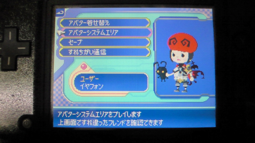 ストーリー<システムエリア になっています^^; すれちがった人は、全員で5人いるのですが、 (全員同じソフト同士のすれちがいではありません^^;) その中の1人は、マールーシャ一式のアバターで、 もう1人は、髪型はシグバールだったんですが、服はヴェントゥスでした^^; (ちなみに、そのアバターの顔には、エラクゥスの傷と、サッズの髭付きです) ヴェントゥスの服欲しさに、そこのフロアだけ何回も繰り返してました← おかげで、手に入る事ができたので、 次は、マールーシャ一式を手に入れるために、そこのフロアも繰り返してました^^; マールーシャのフロアの方が、 ヴェントゥスの服を手に入れられるフロアよりは簡単でしたので、 ラクにクリアする事ができました^^; ストーリーもいい加減プレイしないといけませんよね^^; マイペースに頑張ります! 只今、スクエニメンバーズでは、期間限定で、