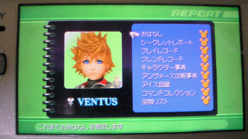 (それは模試があるからです) もし明日が休みでしたら、 キングダムハーツコーデッドの忘却の城をプレイしたかったのですが…(泣) それに、ファイナルファンタジーⅩⅢ(以下FFⅩⅢ)もプレイしたかったですし;; FFⅩⅢは、マイペースをプレイスタイルにしています^^ キングダムハーツシリーズ(以下KH)は、シークレットムービーがありますので、 それを原動力に毎回頑張ってますが、 FFⅩⅢはシークレットムービーがないので、 クリスタルポイントを集めてからストーリーを進めてもいいかなーっと思っています♪ 実は、自分がやり込めているゲームは、KHシリーズだけだと思います。 何故かと思い考えたのですが、 シークレットムービーを、自分の力でやり込んで観たいという理由もありますし、 何よりKHシリーズは、一番大好きなゲームだからこそ頑張れるんだと思います^^ 今、キングダムハーツコーデッド(以下KHcd)の忘却の城のストーリーをプレイしたいです! 今日は、キングダムハーツバースバイスリープ(以下KHBbS)が発売してから、 先ほど放送されていた番組に、ルパンのランキングがあり、 昨日の夜、ついに、3人のレポートをすべてコンプリートしましたー!