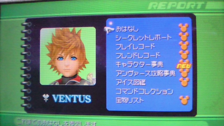 レポートを埋められてホントに良かったです^^ 正直、テラのレポートを完成させるのは、すごく時間が掛かると想定していたので^^; ミニゲームが何故か埋まらなくて、何故かと思い、 ヴェントゥスのレポートを参考にさせてもらうと、 オリンポスコロシアムの、つぼ壊しがまだ出来てませんでした^^; とりあえず、ヴェントゥスもなんですが、レポート完成一歩手前まで置いといて、 今日からはアクアのレポート完成に向けて、やり込みをしたいと思います^^ とりあえず今、自分が想定している予定は、 ミニゲームをしてから、アビリティを集めつつアイスの材料も集めて、 それからアリーナレベルを上げてから、 コマンドボードでしか手に入らないコマンドを集めて、 全てのコマンドを手に入れるために集めていこうと計画しています♪ 今日から頑張っていこうと思います^^ PR 昨日の夜、キングダムハーツバースバイスリープの、