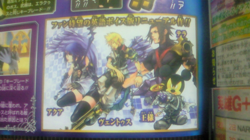 『キングダムハーツ バースバイスリープ ファイナルミックス』の新情報が載ってました! (自分トコのとある場所には、ジャンプが早めに発売する場所があるんです♪) ミラージュモードの新しいボスに、“アーマー・オブ・ザ・マスター”が登場します^^ 鎧の部分といい、キーブレードといい、 マスター・エラクゥスと同一人物である可能性が高いです! 記事を読んでいると、“アーマー・オブ・ザ・マスター”の強さが凄く伝わってきます! それと、アンヴァースのカラーも変更するみたいです! 今までのファイナルミックス版でも、ハートレスが変更されていたので、 バースバイスリープでは、アンヴァースのカラーが変わるみたいです^^ (画像では、フラッドが青色から紫色に変わってました) そして、ファイナルミックス版の新しいイラストも載ってました! 新イラストは、雑誌を買うまでの楽しみにしたいという人の為に、 追記にて、感想と一緒に載せておきます。 この記事にコメントする